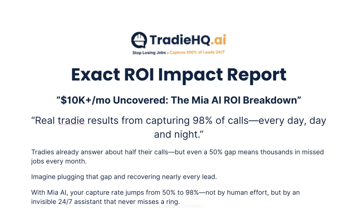 Get the real numbers behind how Mia AI captures 98% of calls and boosts tradie business revenue—while you’re still on the tools.