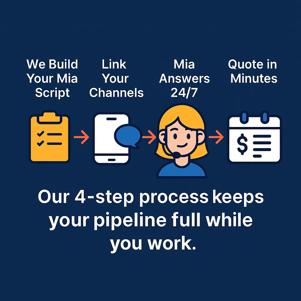 We handle onboarding—from phone number linking to custom call scripts—so Mia asks exactly the questions you need.